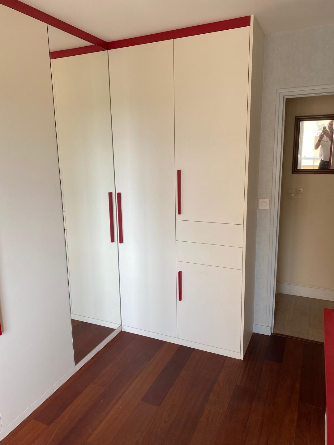 Mélaminé rouge cerise, Venice Walnut et Vanilia.